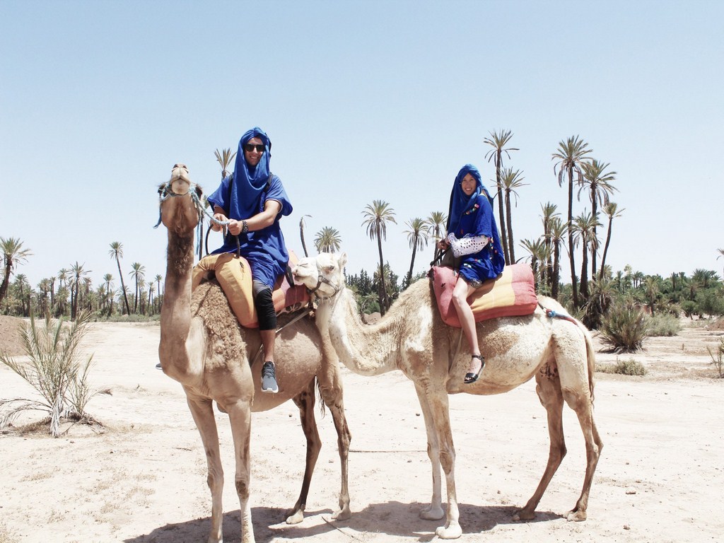 You will start the itinerary of the 1-hour sunset camel ride tour with a meeting with the driver who will pick you up from your accommodation (hotel, riad or any point in Marrakech…) to Palm Groves of Marrakech, the drive is about 8 Km. Upon arrival, meet your camel caravan, and get dressed like a nomad in a Tuareg dress and headscarf. After taking some photos with the new outfit, and getting introduced to your camels, start an hour camel ride by passing through traditional villages as well as many luxury hotels, majestic residences, golf courses populating these gardens of 15 000 hectares. During this trip to the palm grove on the borders of Marrakech, you will discover the lifestyle of its inhabitants out of the city center by plunging into their authentic local culture preserved for centuries.
