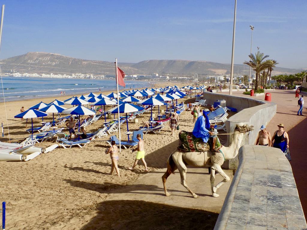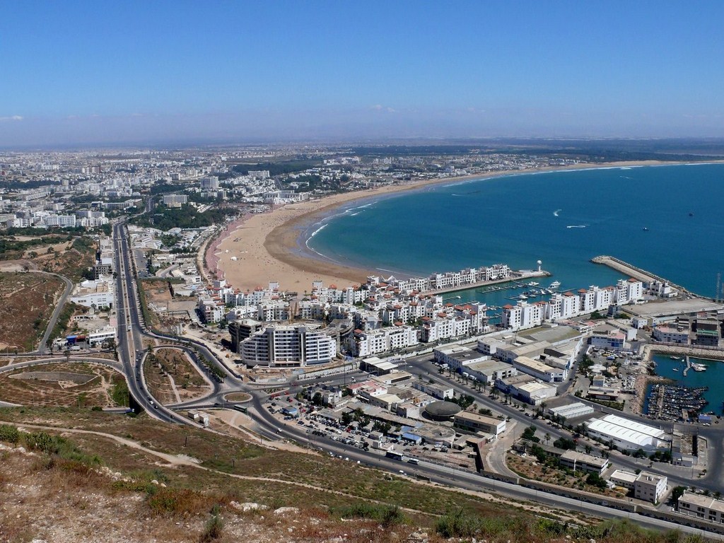 Go for a coastal trip to Agadir city, enjoy a change of scenery, and discover the port of Agadir, the local fish market, the medina, Agadir Beach, the 16th-century Kasbah Agadir Oufella, and the Mohamed V Mosque. Agadir is a modern city located on the Atlantic coast southwest of Morocco. This city has a good urban development, large buildings, big hotel chains, cafes and wide roads, which give it a special style and European touch.