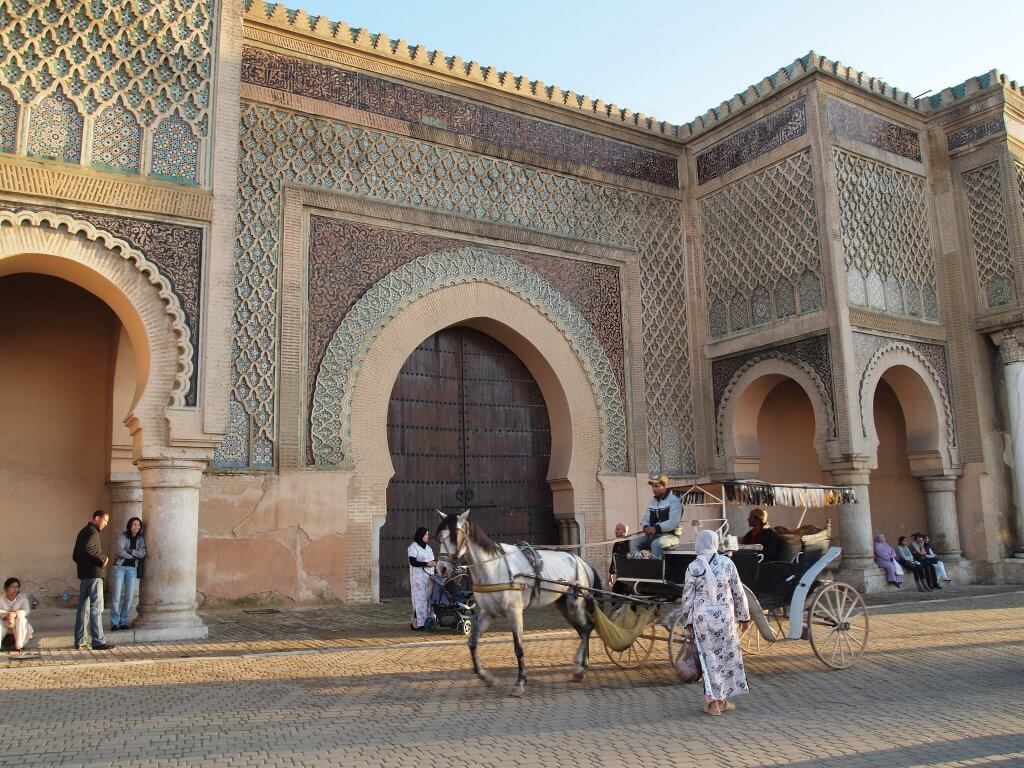 We will meet you in Tangier, the northern port of Morocco facing Spain, and we drive through the Rif Mountains with its Berber towns and valleys. Hidden away in these mountains is the Blue Pearl of Chefchaouen, the houses are painted white and blue, narrow squares, winding streets and blue painted stairways make this a photographer’s dream and a fascinating place to explore. After lunch in the atmospheric square, we continue to Meknes where we visit the local sites: Bab Mansour, the Swani basin and Moulay Ismail Mausoleum. We will stay overnight in a charming hotel or riad.